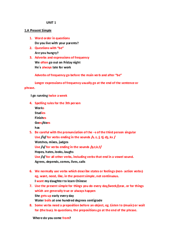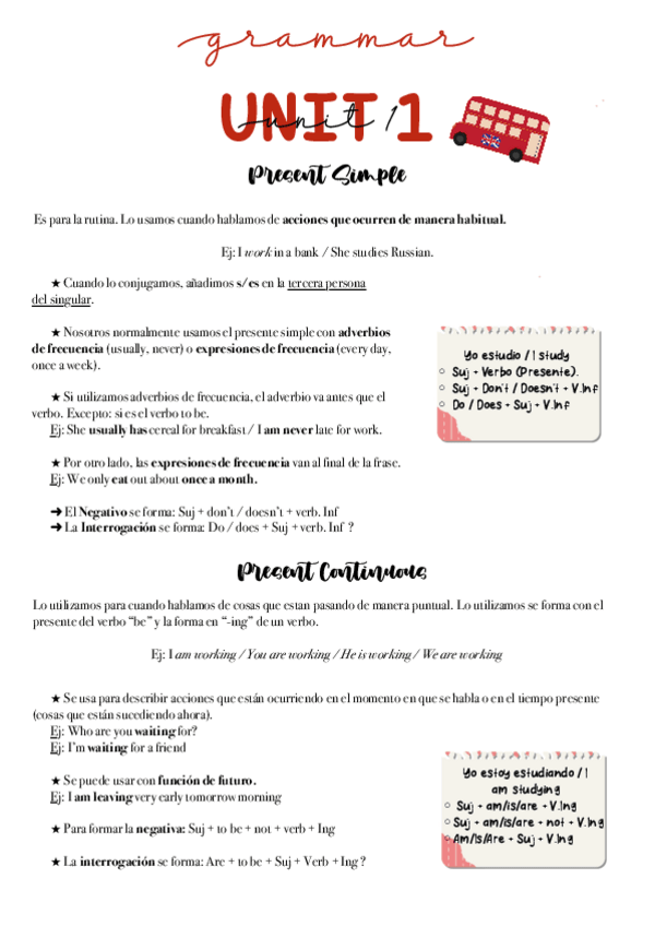 ESQUEMAS DE GRAMÁTICA, UNIT 1. Para obtener una buena impresión de los apuntes, selecciona la opción de imprimir 2 páginas por hoja :)