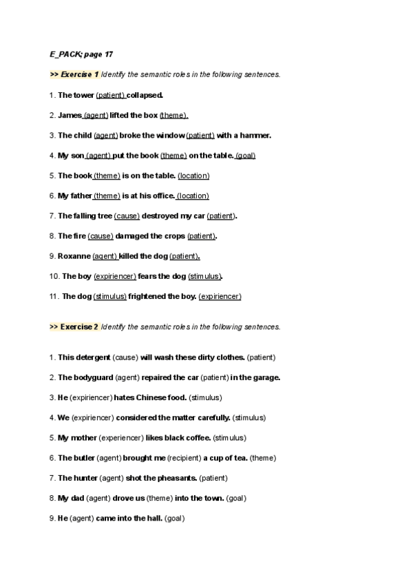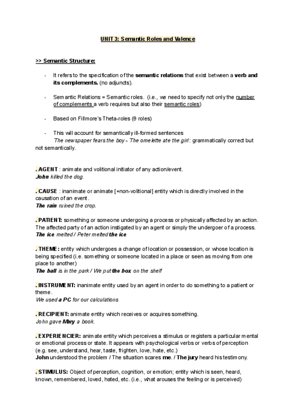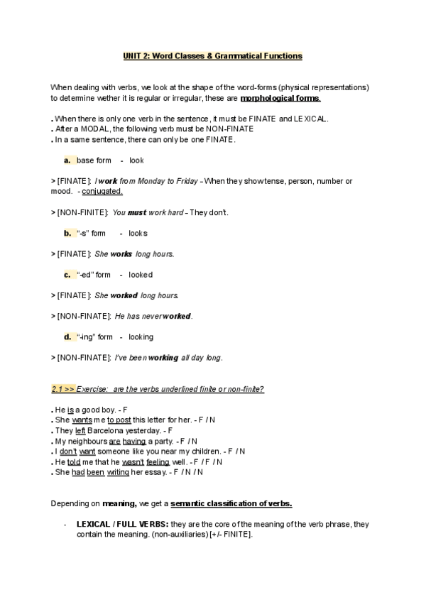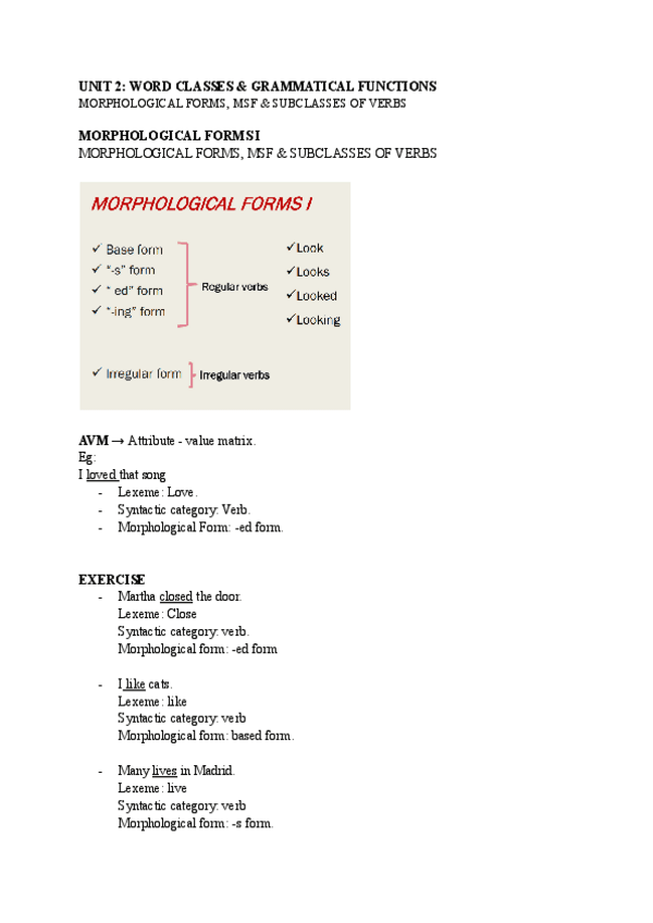 These are some notes about the second unit of lexicology. They include information about AVMs, the syntactic categories of verbs, the complements they subcategorize for, etc.