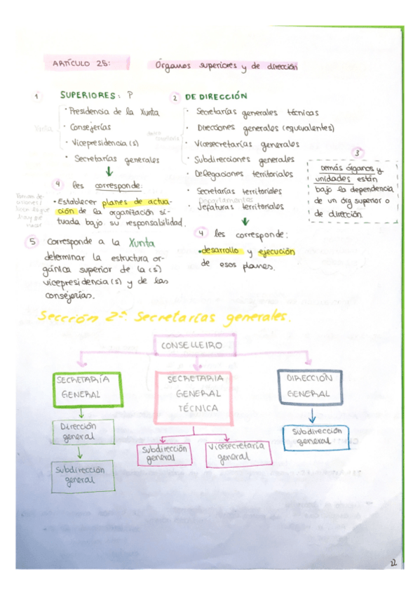 Mapas conceptuales sobre la organización de la administración general de Galicia, órganos superiores y de dirección. Capítulo II del título I de la LOFAXGA