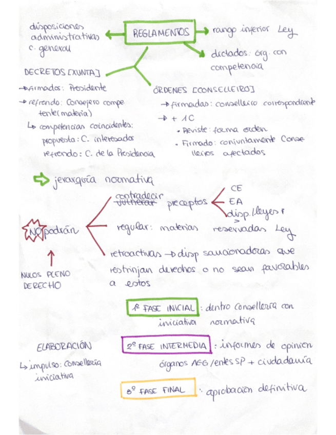 Esquema sobre la potestad reglamentaria de la administración general de galicia y su gobierno