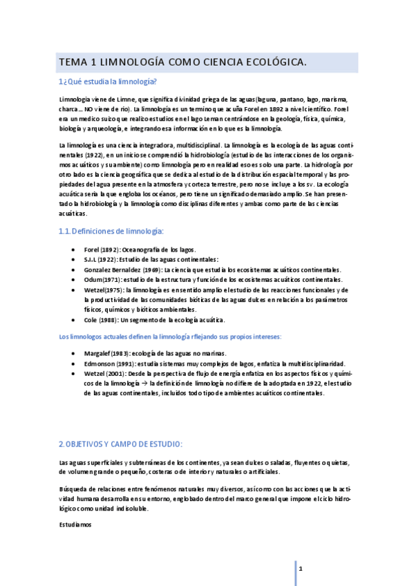 He publicado nuevos apuntes de 4º Limnología: Apuntes examen
