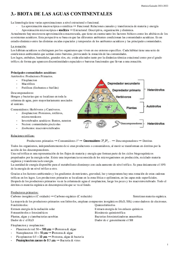 He publicado nuevos apuntes de 4º Limnología: Apuntes limnología
