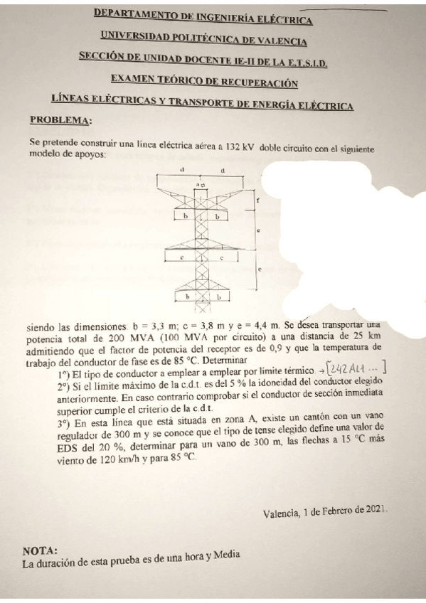 He publicado nuevos examenes de 3º Líneas Eléctricas y Transporte Energía Eléctrica: P3.RECUPERACION.pdf