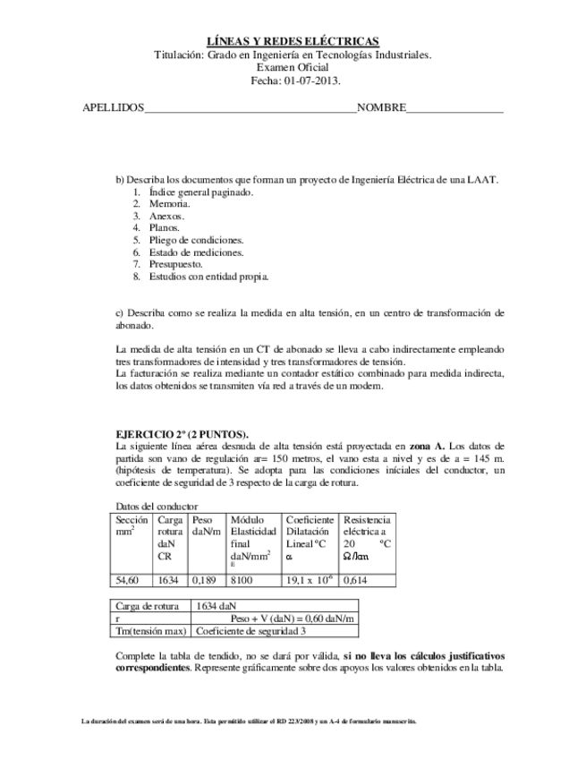 He publicado nuevos examenes de 3º Líneas y Redes Eléctricas: Examen LRE 2013.pdf