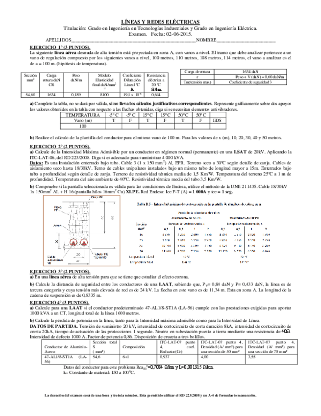 He publicado nuevos examenes de 3º Líneas y Redes Eléctricas: Examen Junio 2015 Resuelto.pdf