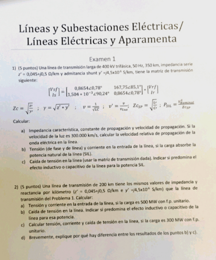 He publicado nuevos examenes de 3º LINEAS Y SUBESTACIONES ELECTRICAS: parcial-1_2023.pdf