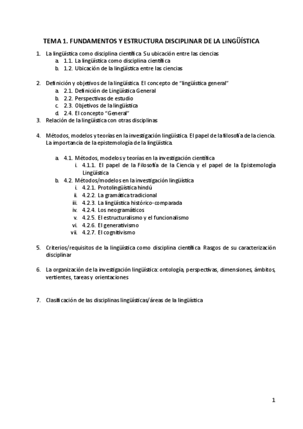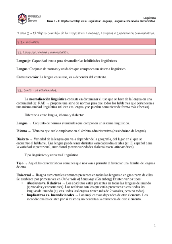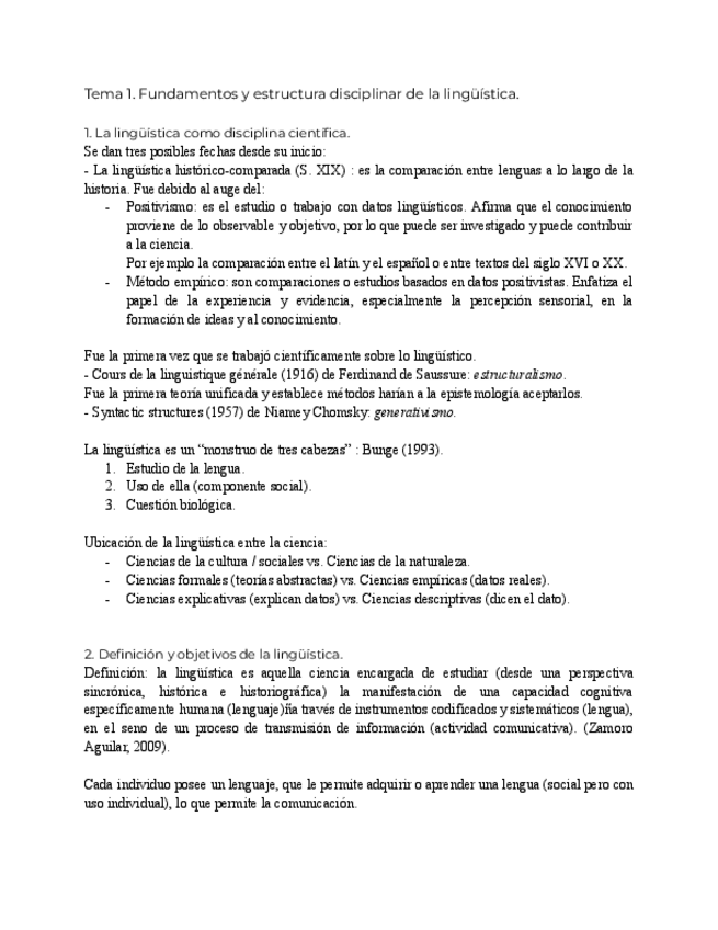 Tema 1 de lingüística. Tiene un resumen al final y posibles preguntas.