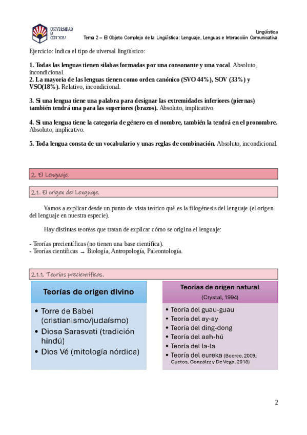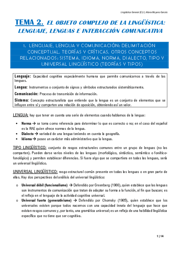 Tema 1 de la asignatura Lingüística general con algunas prácticas y ejemplos.