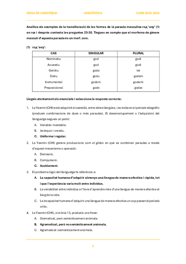 Contiene ejercicios hechos Tema 2 de lingüística completo en clase y posibles preguntas de examen.
