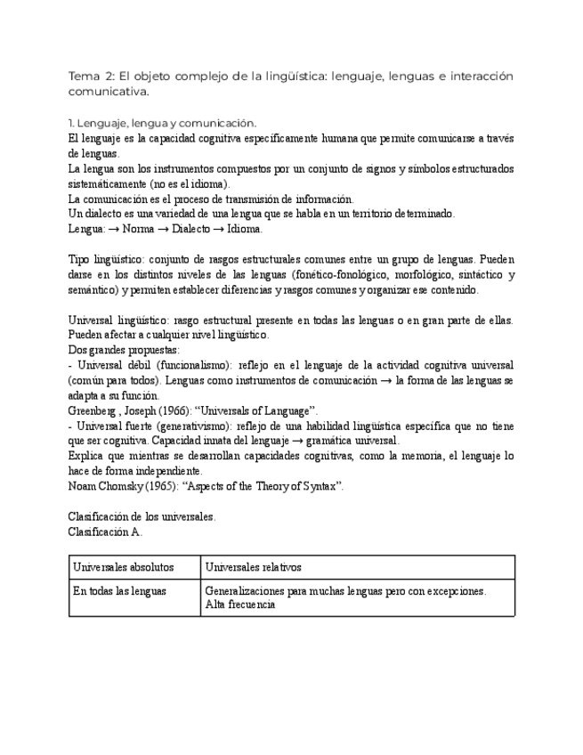 ¡Aquí está el tema 2 de Lingüística! Totalmente propio y con el que saqué un 8'85 en el parcial.
