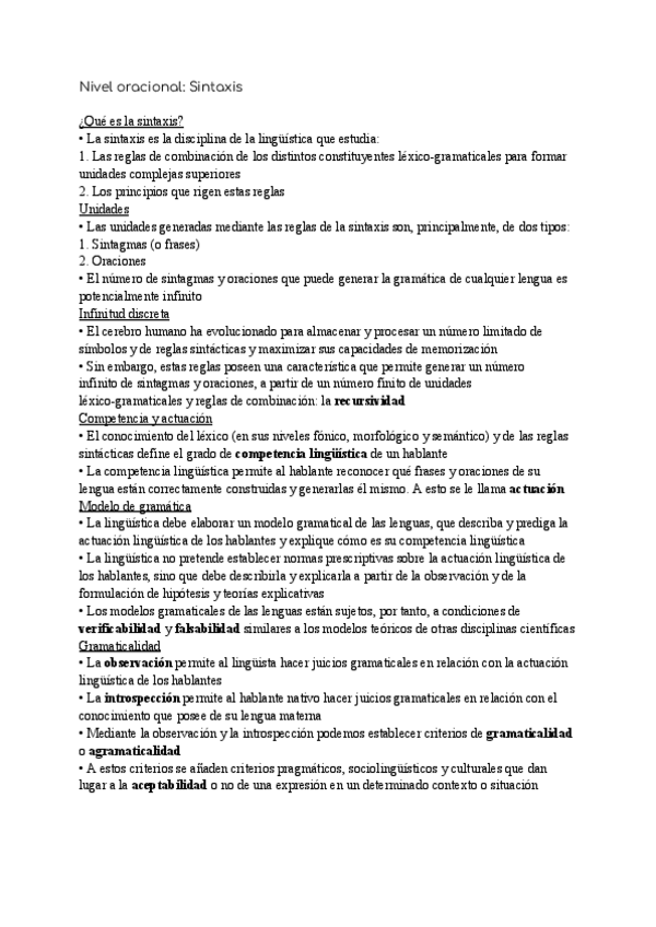 En este documento veremos los diferentes niveles del nivel sintáctico con ejercicios de ejemplo, esquemas y más.
