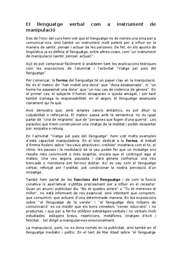 He publicado nuevos apuntes de 2º Lingüística: El-llenguatge-verbal-com-a-instrument-de-manipulacio.docx