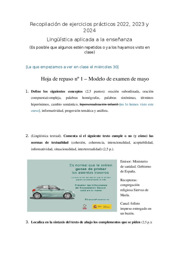 He publicado nuevos examenes de 1º Lingüística Aplicada a la enseñanza: Preguntas examen