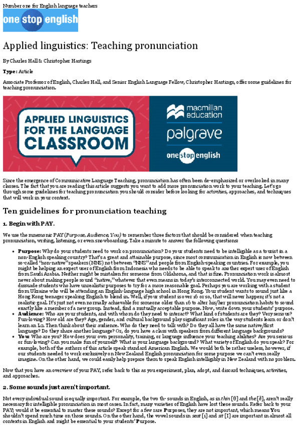 He publicado nuevos apuntes de 3º LingÜística aplicada a la enseñanza del inglés: Unit2.TeachingPronunciation-CharlesHall.pdf