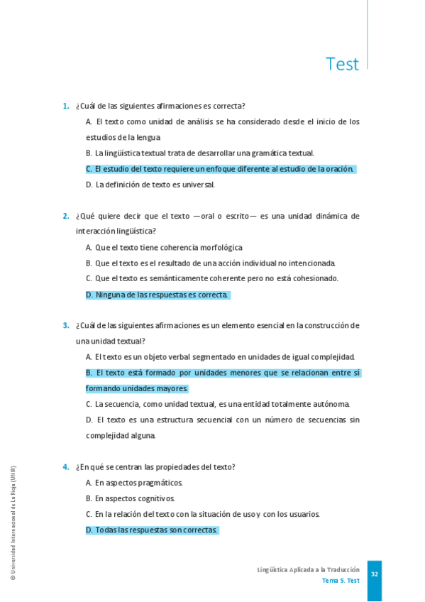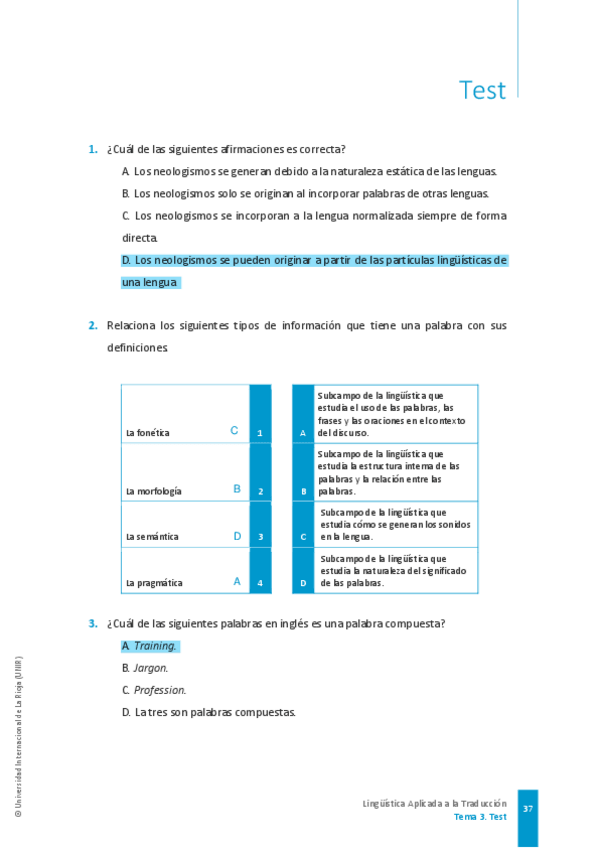 He publicado nuevos test de 1º Lingüística Aplicada a la Traducción: TESTS