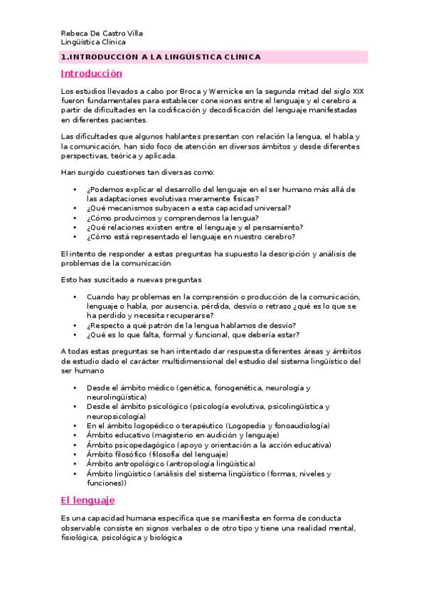 APUNTES PARCIAL 1 LINGÜÍSTICA CLÍNICA (TEMAS 1,3,4)
