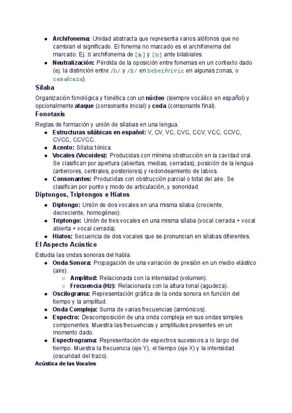 Apuntes de teoría y práctica con ejercicios de análisis de espectrogramas, morfología y sintaxis. Curso 2025/26