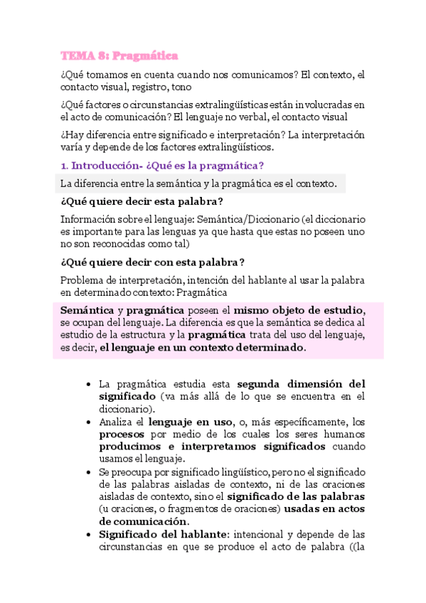 Segundo parcial de lingüística. Incluye sintaxis, semántica y pragmática.