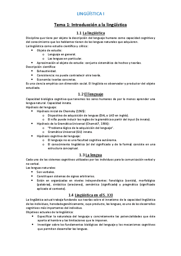 Temario lingüística I resumido