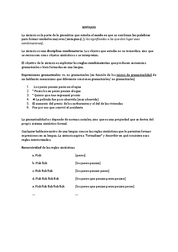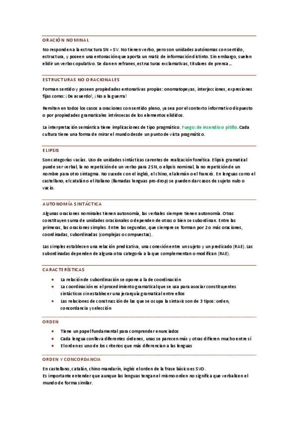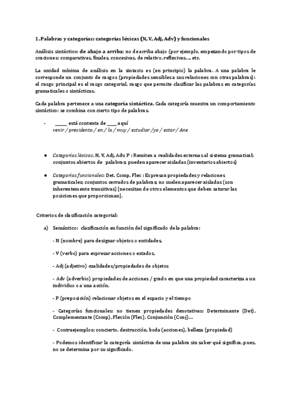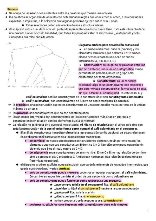 Hola! Te dejo resumido textos y clase de Sintaxis de linguistica II FONOAUDIOLOGÍA- UBA