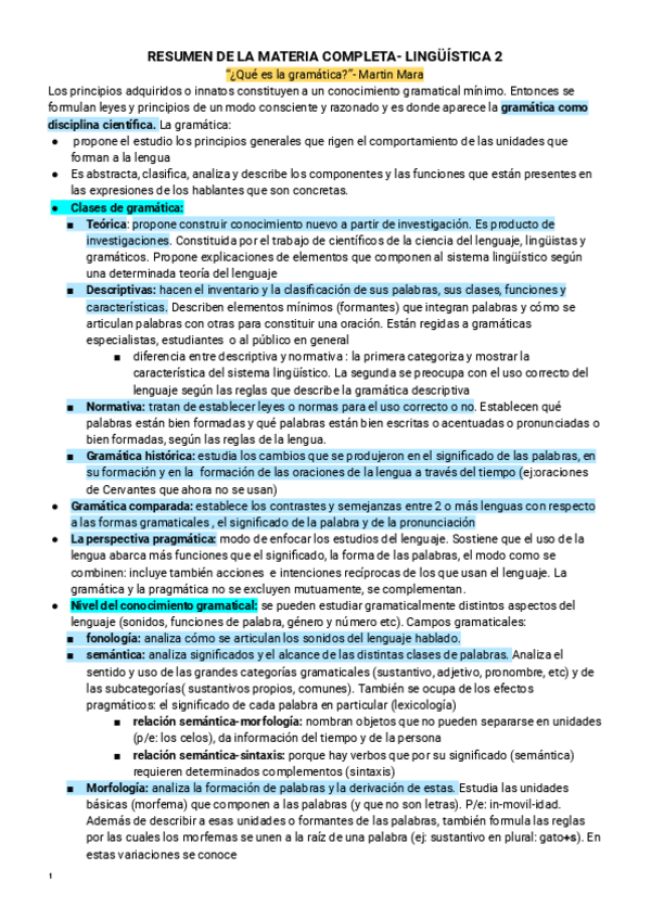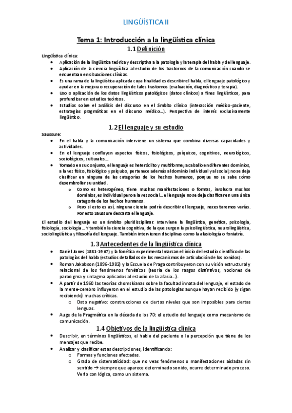Hola! Te dejo resumido textos y clase de TODA LA MATERIA lingüística II FONOAUDIOLOGÍA- UBA