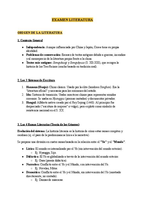 He publicado nuevos apuntes de 3º Literatura de Corea a Través de sus Textos: Apuntes-del-examen-de-Literatura.pdf