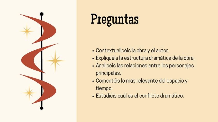 Ejercicios resueltos de los exámenes trimestrales y de la PAU. Incluyen el ejercicio 2 "a) Relaciones internas y funciones constitutivas del género dramático. b) Relación de la obra con su contexto histórico-cultural de producción. c) Inscripción en la