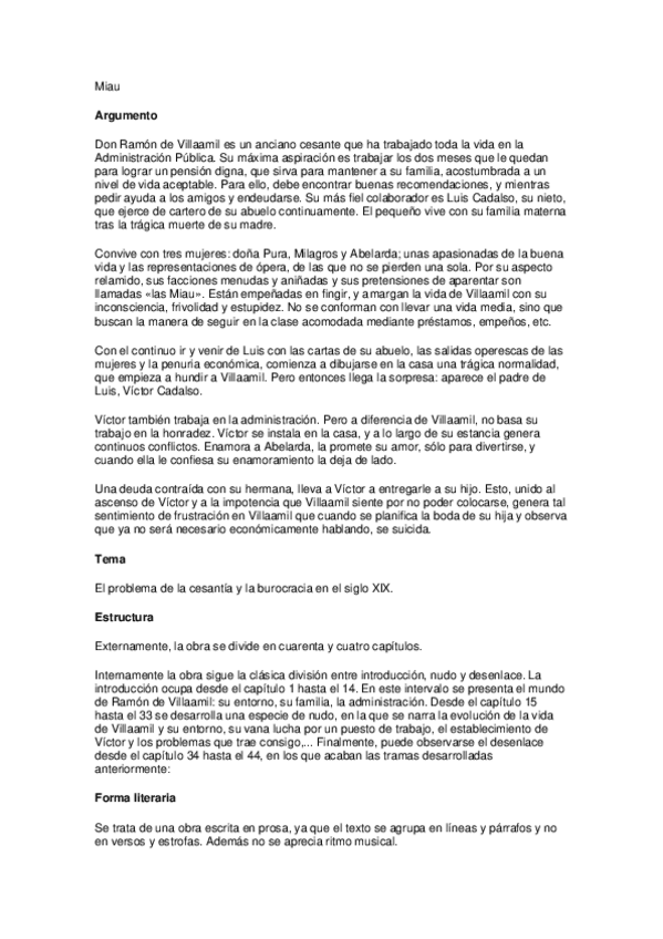 He publicado nuevos practicas de 2º Literatura en Lengua Española los Textos del Canon: Miau.pdf