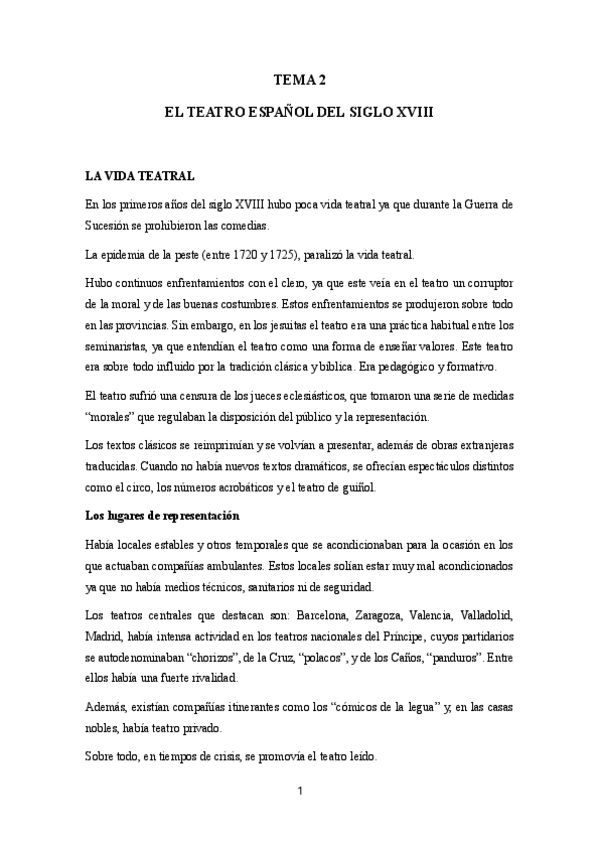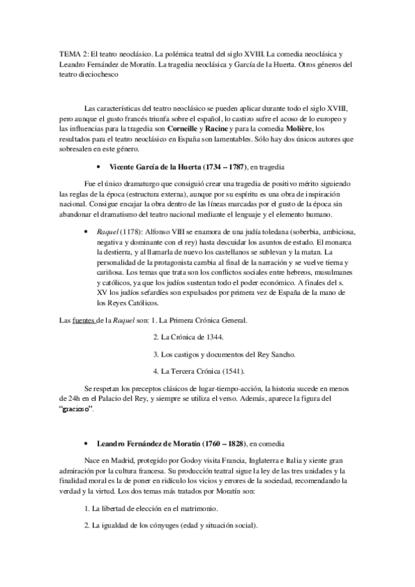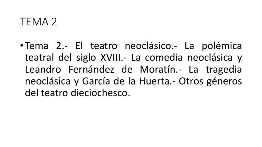 El teatro durante el siglo XVIII. Principalmente, teatro neoclásico. Selección de autores y resumen de la polémica teatral.
