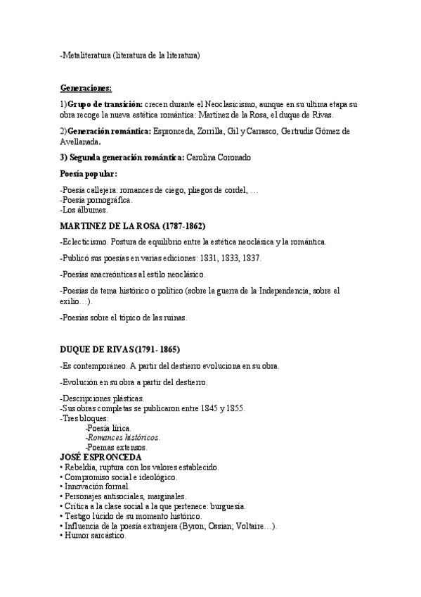 Desarrollo y resumen de los apuntes. Autores: Espronceda y Gomez de Avellaneda.