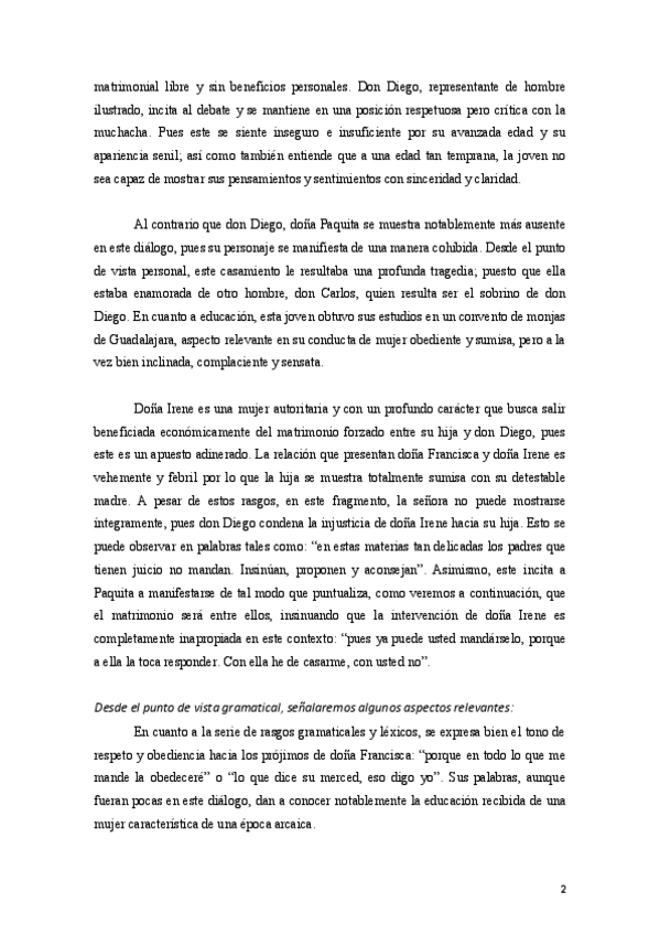 Comentario literario de El sí de las niñas.