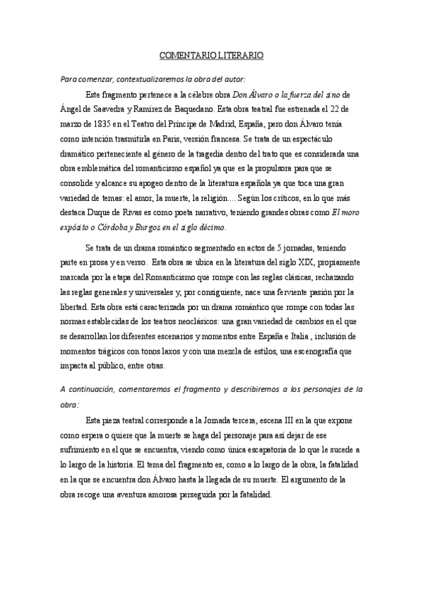 He publicado nuevos apuntes de 1º LITERATURA ESPAÑOLA DE LA ILUSTRACIÓN Y DEL ROMANTICISMO: Don-Alvaro-o-la-fuerza-del-sino-Comentario-de-texto.docx