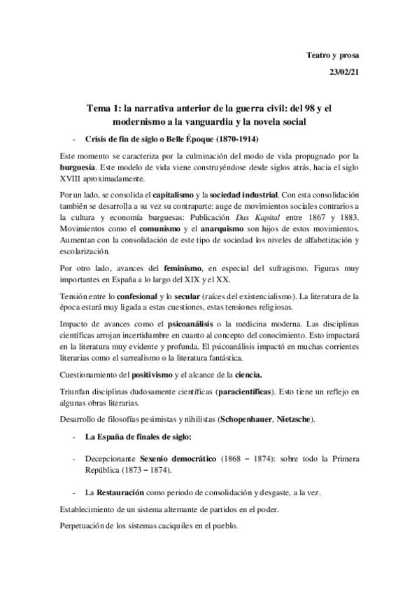 LITERATURA ESPAÑOLA DEL SIGLO XX: TEATRO Y PROSA apuntes Laura primera parte