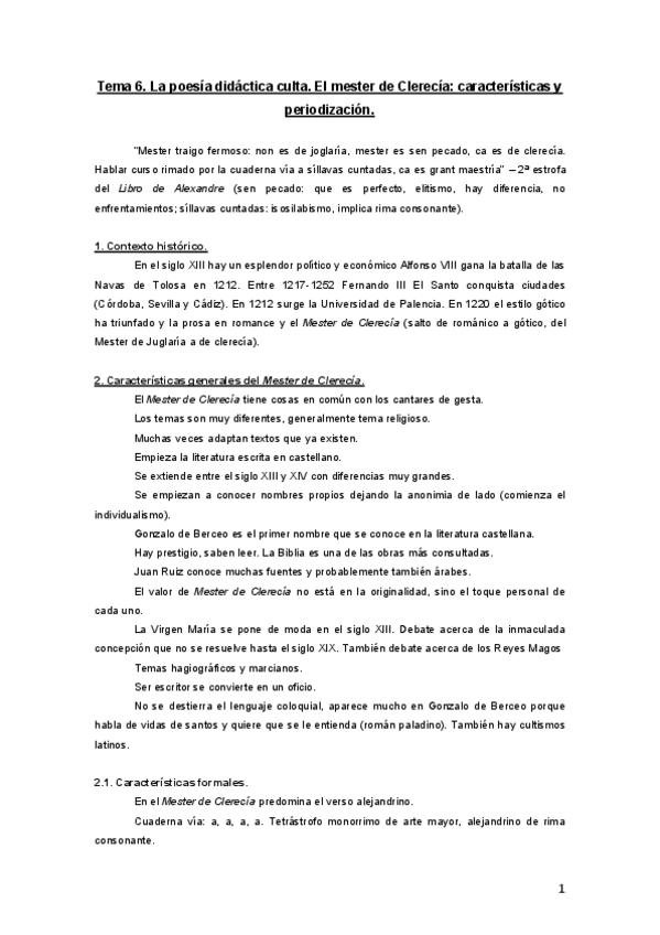 He publicado nuevos apuntes de 1º Literatura Española Medieval: desde los Orígenes al Siglo Xiv: T6-el-mester-de-clerecia.pdf