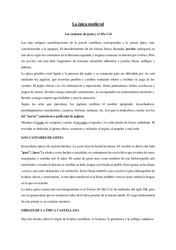 He publicado nuevos apuntes de 1º Literatura Española Medieval: desde los Orígenes al Siglo Xiv: Tema-3-Poesia-epica.pdf