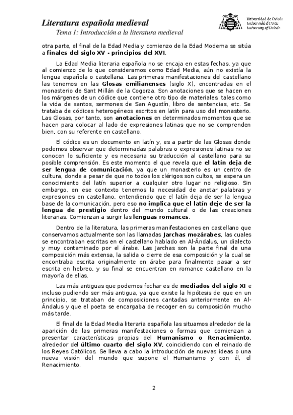 Literatura Española Medieval temas 1-6