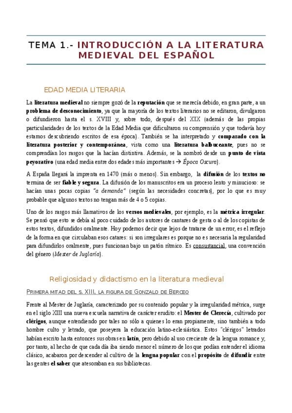 Literatura Española Medieval temas 1-6