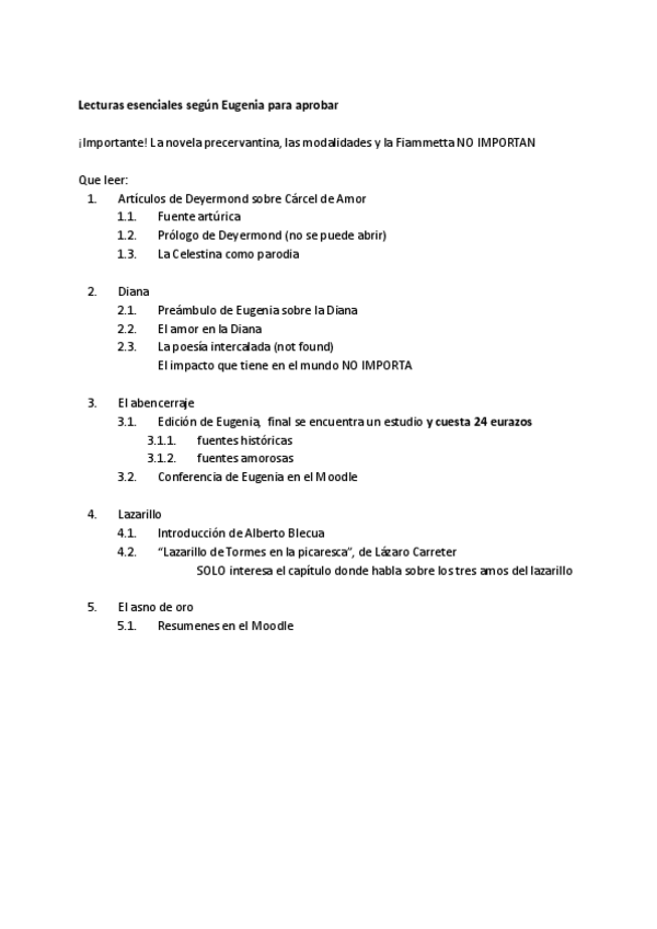 Lecturas esenciales según Eugenia para aprobar Prosa espanyola del Segle d'Or