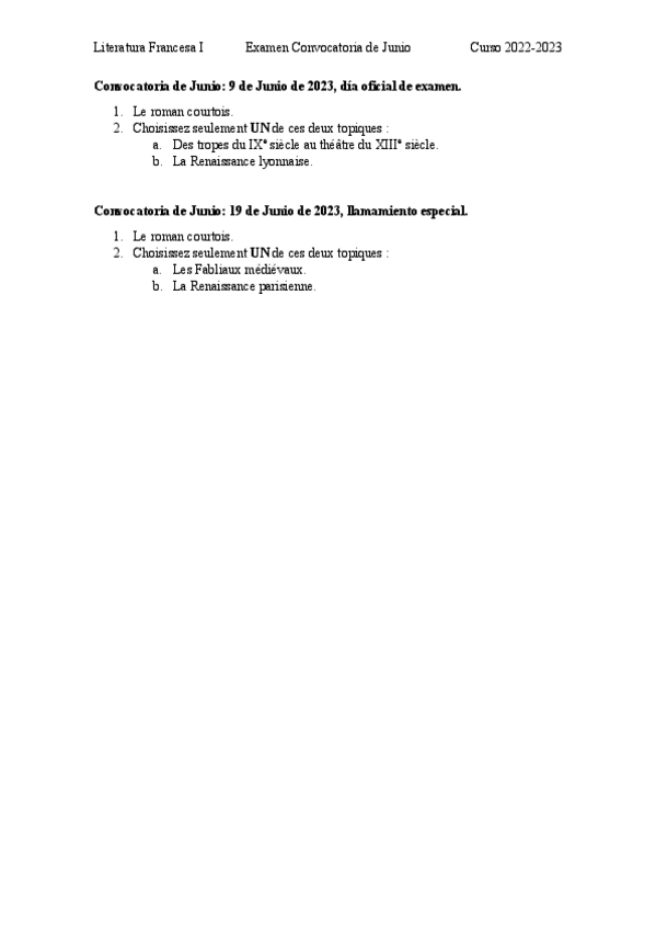 He publicado nuevos examenes de 2º Literatura Francesa I: Examen-Junio-2023.pdf