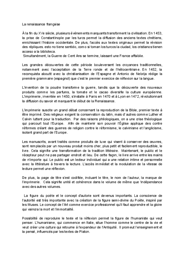 He publicado nuevos apuntes de 2º Literatura Francesa I: RENAISSANCES LYONNAISES ET PARISIENNE.docx