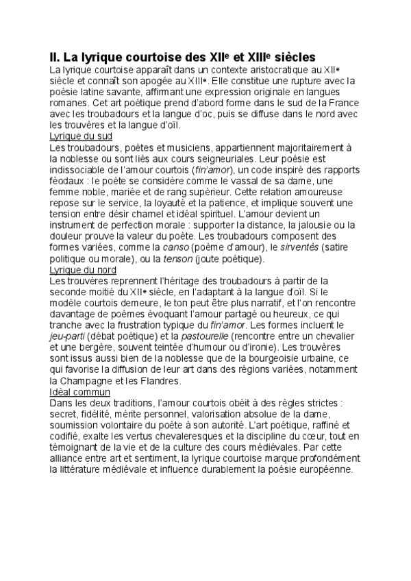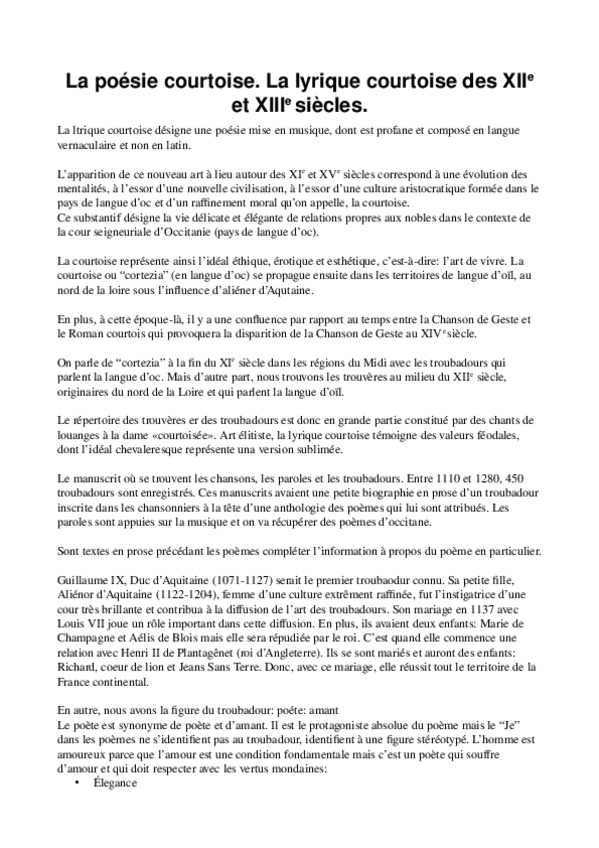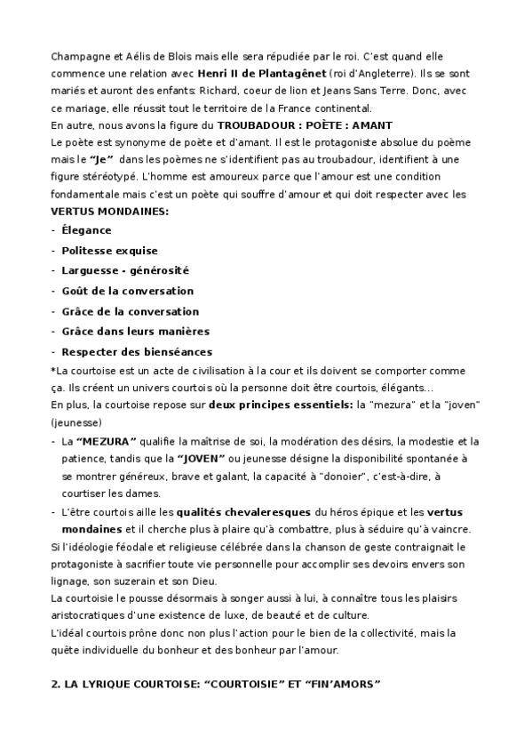 He publicado nuevos apuntes de 2º Literatura Francesa I: T.2. LA LYRIQUE COURTOISE.docx