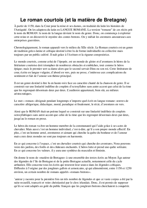 He publicado nuevos apuntes de 2º Literatura Francesa I: ROMAN COURTOIS.docx