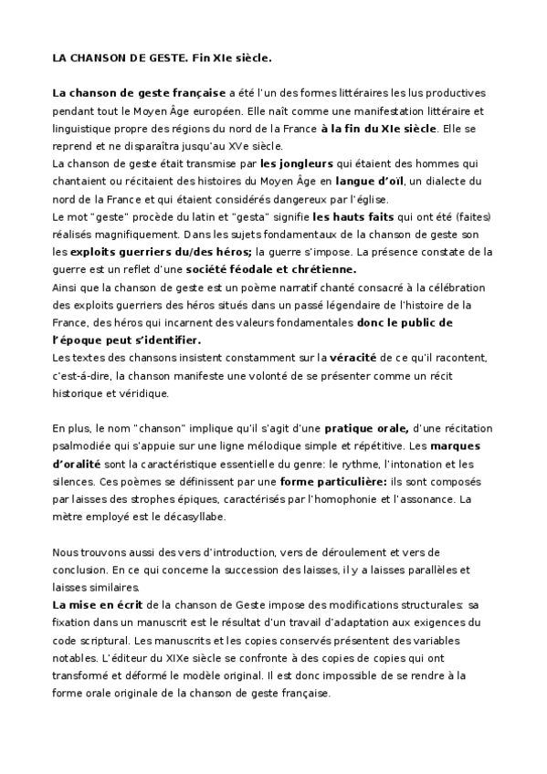 He publicado nuevos apuntes de 2º Literatura Francesa I: CHANSON DE GESTE.docx