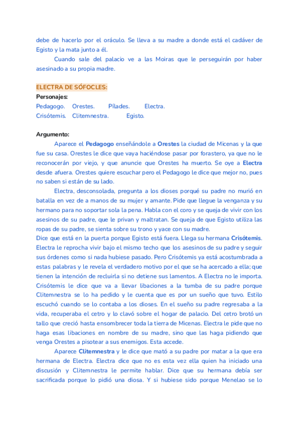 Resúmenes de las tres obras (Las Coéforos, Electra de Sófocles y Electra de Eurípides) y diferencias entre ellas.