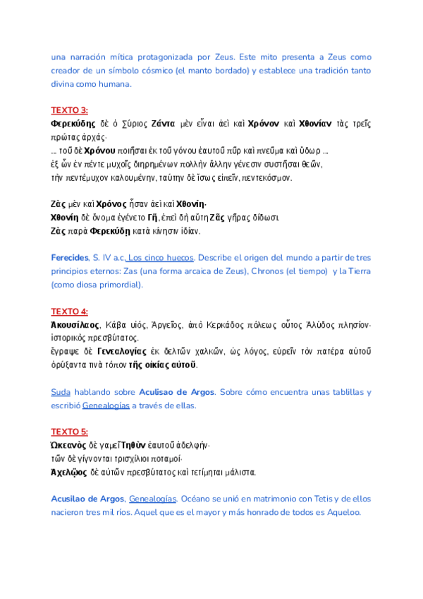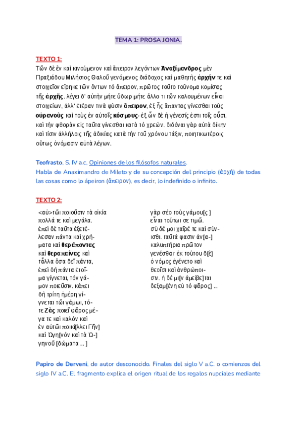 En el documento están todos los textos en griego vistos en clase, de los Power Points. Con el autor, nombre de la obra y una explicación del texto.