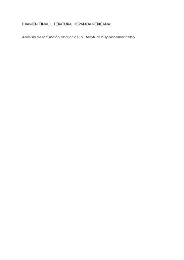 Así hice la pregunta final del examen de literatura hispanoamericana de primero. Es un resumen del temario enfocado en la función ancilar/compromiso social del autor en la literatura hispanoamericana.