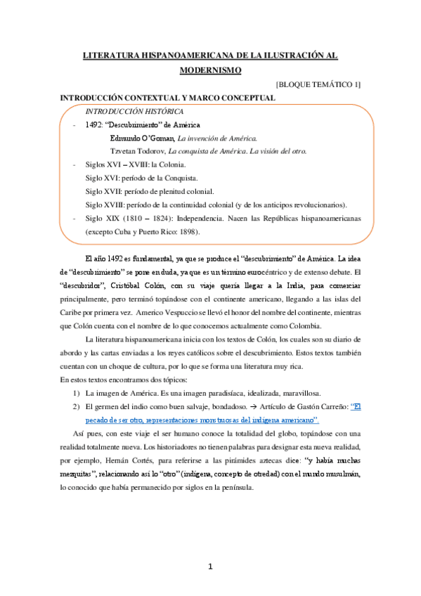 He publicado nuevos apuntes de 1º LITERATURA HISPANOAMERICANA DE LA ILUSTRACIÓN AL MODERNISMO: Bloque-1.pdf