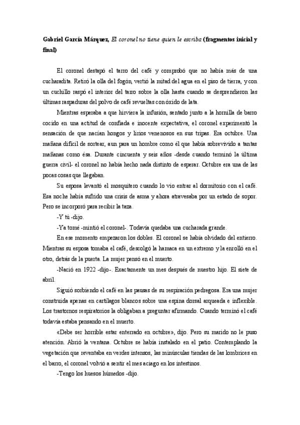 He publicado nuevos apuntes de 2º Literatura Hispanoamericana II (siglos XX-XXI): GGM-El-coronel-no-tiene-quien-le-escriba-fragmentos.pdf