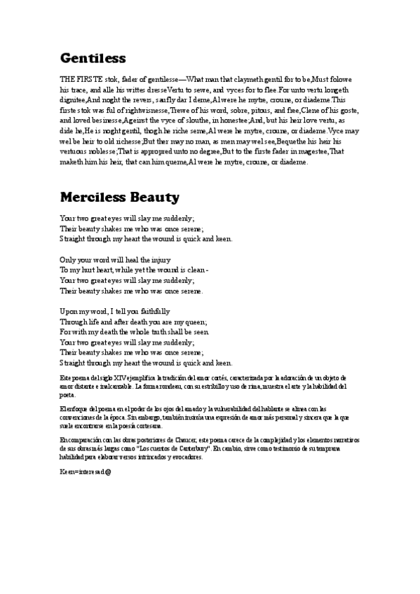 He publicado nuevos apuntes de 1º Literatura Inglesa 1: Comentario-Gentilesse.pdf