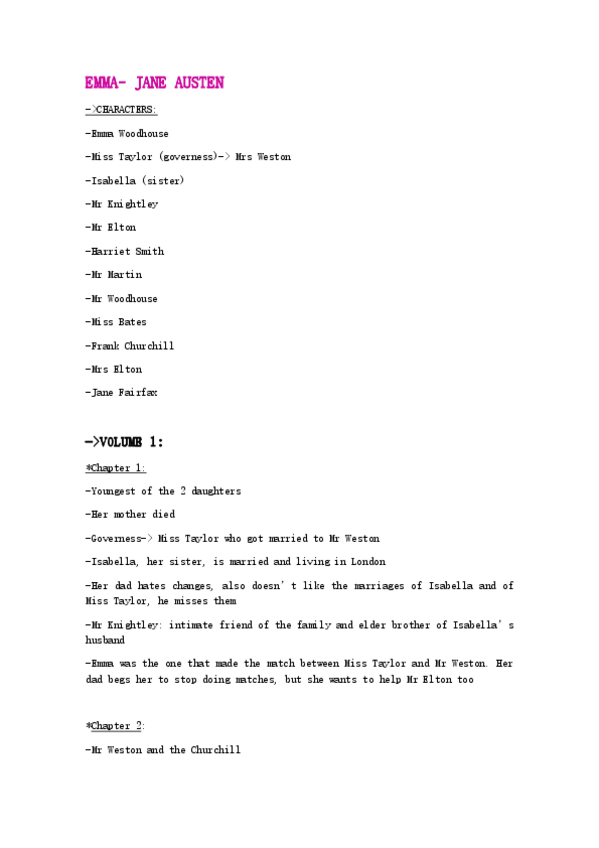 Resume de Emma porcapítulos (INCOMPLETO!!!) solo hasta el capítulo 35 (de los 55 totales)